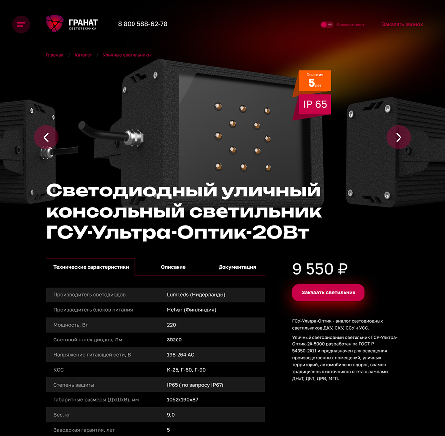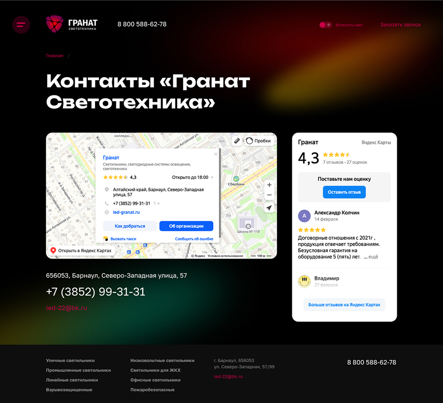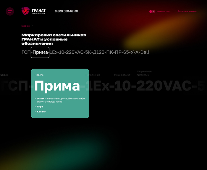 Сайт «Гранат Светотехники»