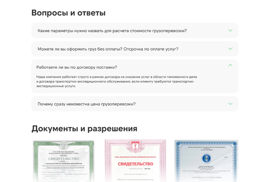 Услуги подробно представлены не только в плане описания, но и сопровождаются ценами, отзывами текущих клиентов компании. Необходимые лицензии и сопровождающие документы так же — в ближайшем доступе.